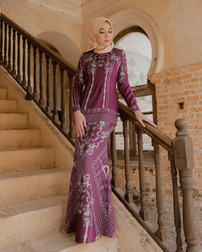 Taufiq Al Rahman Athena Baju Kurung Modern Maroon FIT INFORMATION Designed for a semi-fit Heavy-weight non-stretchy fabric Best Fit Size XS. Dahlia Silk Kurung - Maroon - Cutting. The specialty of our Maroon Silver Baju Melayu Perempuan is its pattern.
